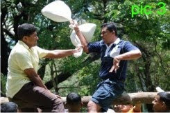 - Kotta pora (see pic 3) a pillow fight while sitting on a parallel bar, the first person falling looses;